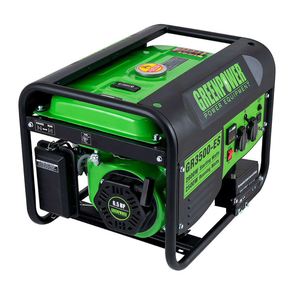 موتور برق بنزینی 2500 وات گرین پاور با استارت الکتریکی مطمئن، دارای تکنولوژی ساسات و استارت سرد است که کمک میکند موتور برق در هوای سرد روشن شود. همچنین این موتور برق مجهز به سیستم نمایشگر سه کاره یا Intelligauge میباشد که نظارت بر ولتاژ، فرکانس و ساعات کار دستگاه را آسان میکند. سیستم Intelligauge کمک میکندکه بتوان به آسانی ولتاژ، فرکانس و ساعات کارکرد را در هر لحظه بررسی کرد.این موتور برق که با سنسور خاموش کنندهی کمِ روغن طراحی شده است، شامل 0.35 لیتر روغن 10W-40 است.