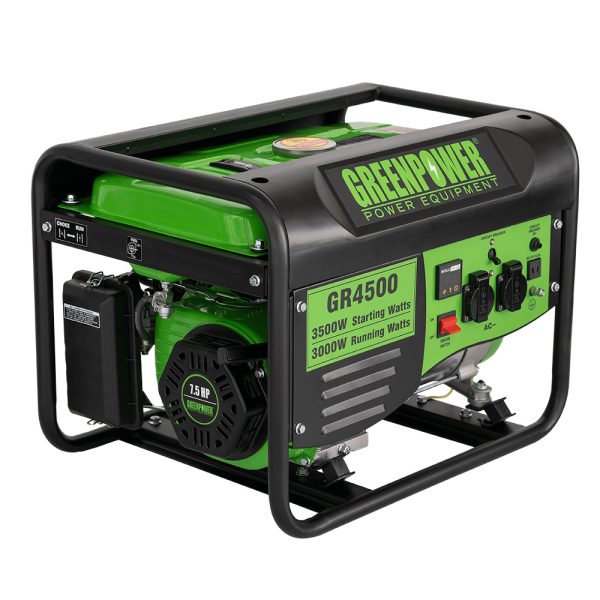 موتوربرق کوچک خانگی بنزینی GR4500 گرین پاور با در نظر گرفتن ایمنی و راحتی شما طراحی شده است. بدنه این موتور برق بنزینی مقاوم با بدنه فولادی بادوام ساخته شده است و همچنین حمل و نقل این موتور برق بسیار آسان است. موتوربرق بنزینی GR4500 دارای توان ماکزیمم 3000 وات و توان نرمال 3500 وات است و همان چیزی است که برای استفاده در جوشکاری، بالابر، کفکش، کولر آبی، کولر گازی تک فاز و نانوایی ها مناسب است.