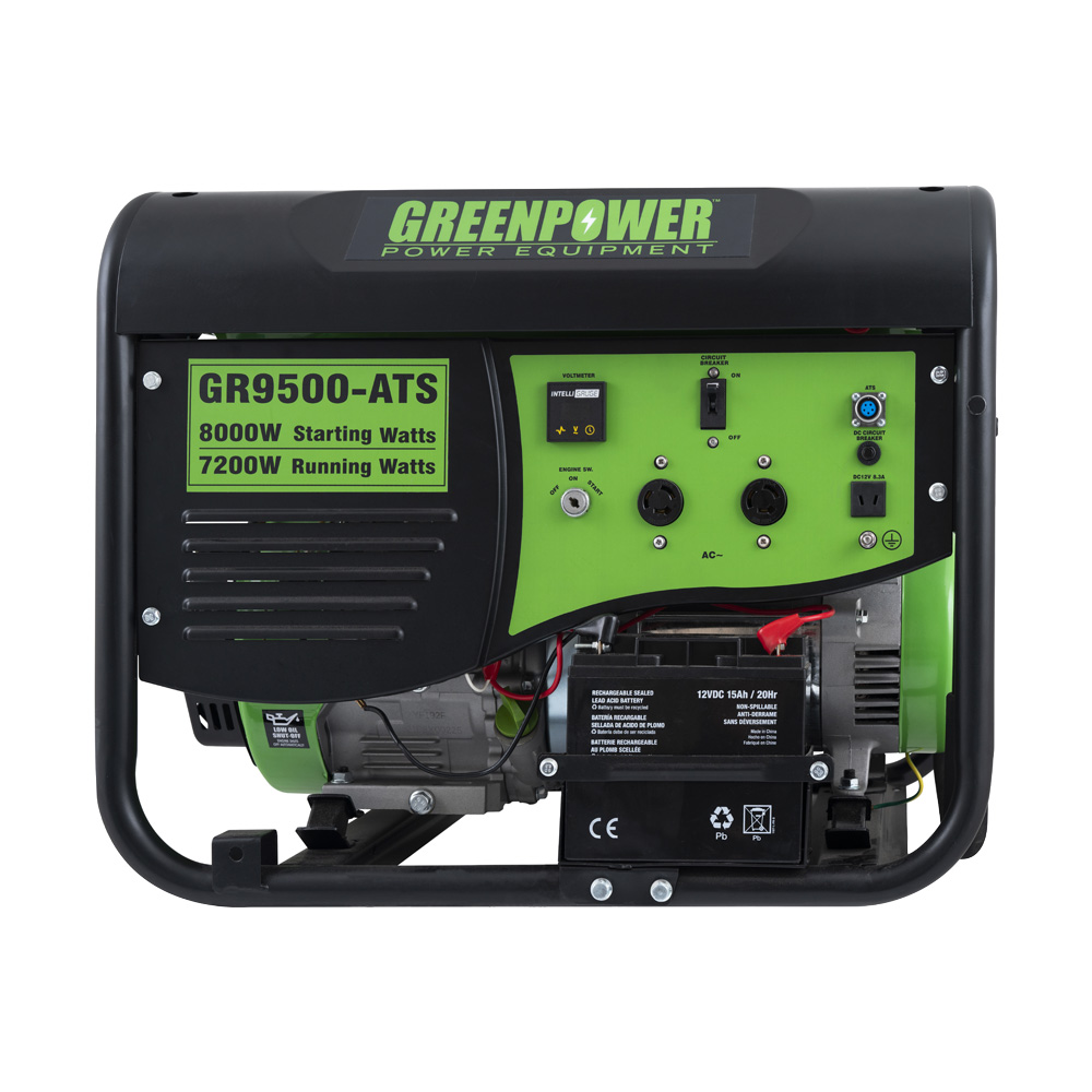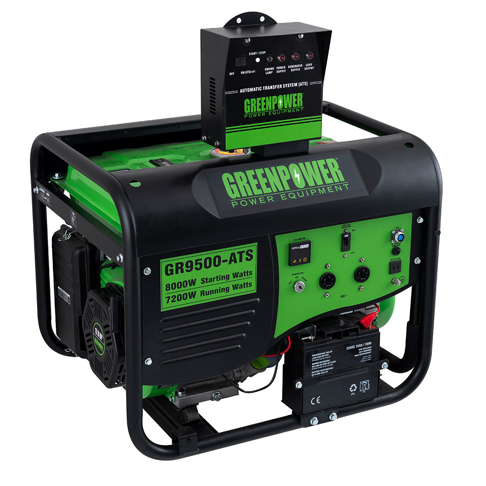 موتور برق بنزینی 2500 وات گرین پاور با استارت الکتریکی و اتوماتیک مطمئن، دارای تکنولوژی ساسات و استارت سرد است که کمک میکند موتور برق در هوای سرد روشن شود. همچنین این موتور برق مجهز به سیستم نمایشگر سه کاره یا Intelligauge میباشد که نظارت بر ولتاژ، فرکانس و ساعات کار دستگاه را آسان میکند. سیستم Intelligauge کمک میکندکه بتوان به آسانی ولتاژ، فرکانس و ساعات کارکرد را در هر لحظه بررسی کرد.این موتور برق که با سنسور خاموش کنندهی کمِ روغن طراحی شده است، شامل 0.35 لیتر روغن 10W-40 است. موتوربرق کوچک خانگی بنزینی GR9500-ATS گرین پاور شامل یک پریز برق خروجی خانگی 220 ولت ، 380 آمپر است. موتور 550 سی سی تک سیلندر OHV این موتور برق، 7200 وات برق تولید می کند و زمانی که مخزن 30 لیتری بنزین پر شود، تا 12 ساعت با 50 درصد بار کار می کند. میزان صدای این موتور برق 65 dB از فاصله 7 متری می باشد، که تقریبا شبیه صدای جاروبرقی معمولی می باشد. بسته بندی هوشمندانه و بهینه این موتور برق به همراه دستورالعمل های دفترچه راهنمای محصول راه اندازی این موتور برق را راحت و بی دردسر کرده است.